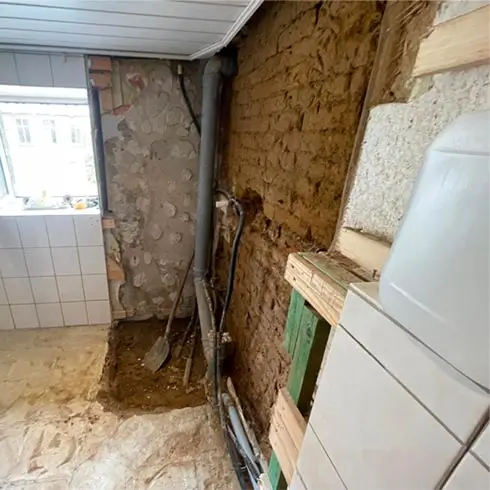 Es wurde nach Leckageortung die Trockenbauwand demontiert und neu wiederhergestellt.